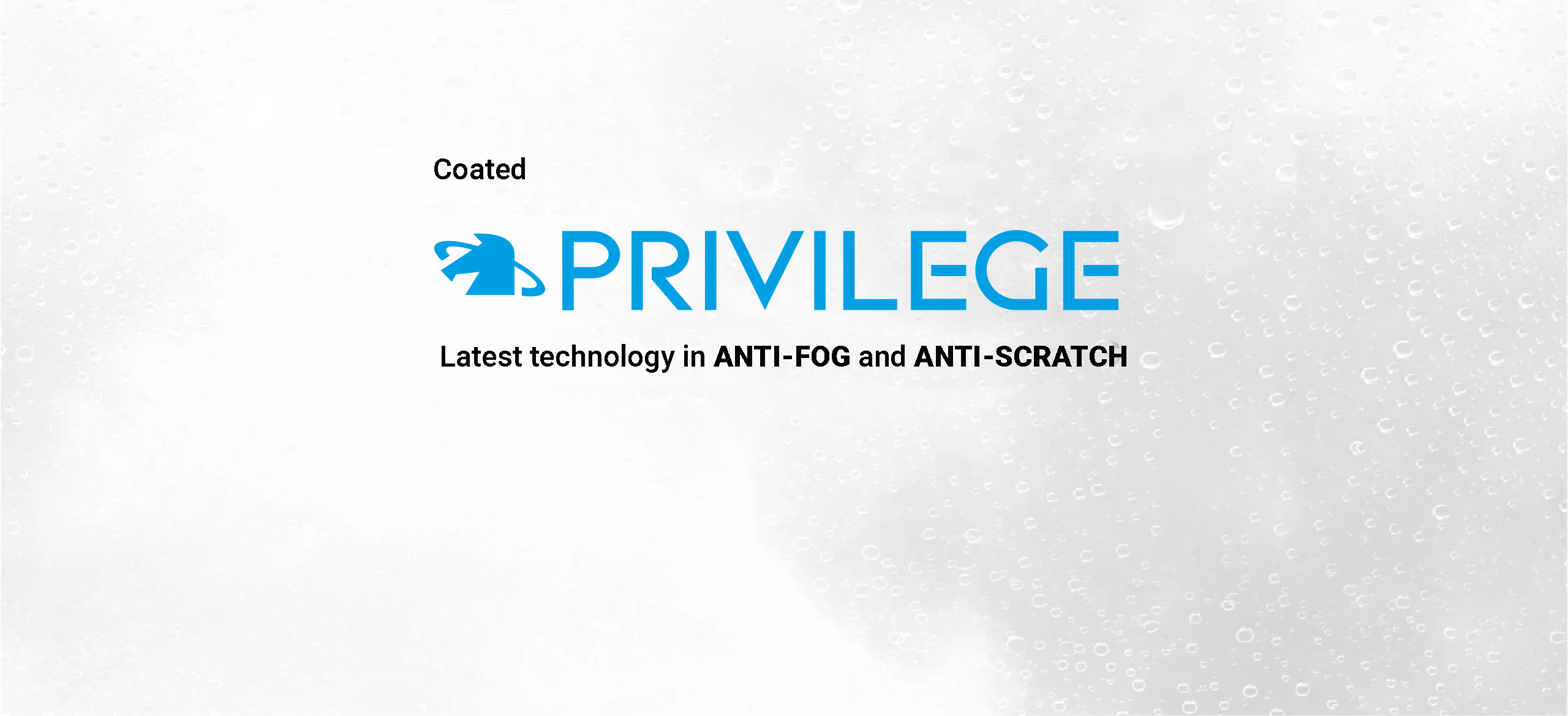 | PRIVILEGE | Is a state-of-the-art treatment that offers superior Anti-fog performance, preventing fogging even in high humidity environments, and Anti-scratch performance, with wear resistance far superior to the standard. |